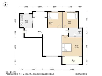 户型齐全,主打明卫,明厨,客厅朝南三居