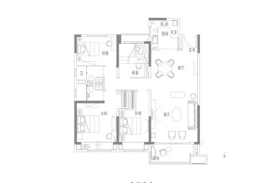 户型齐全,主打户型方正,卧室朝南三居