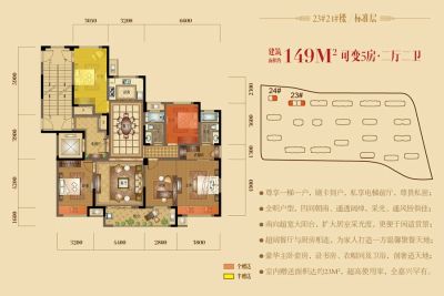 铂金府邸户型主要有128平-142平的南北通透的四居 、149平-175平的南北通透,飘窗的五居 、95平-98平的南北通透的三居 。