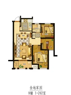 金地家园福邸 3室1厅 南