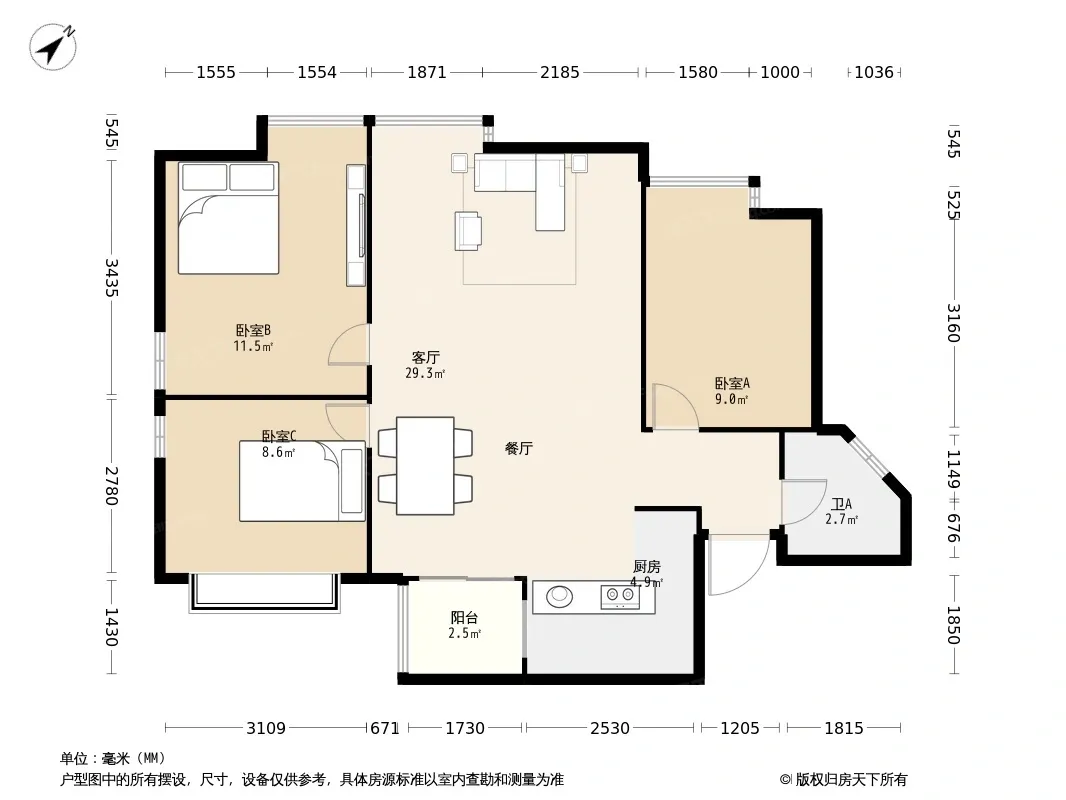 *获取完整户型报告,同时会有免费语音讲解服务