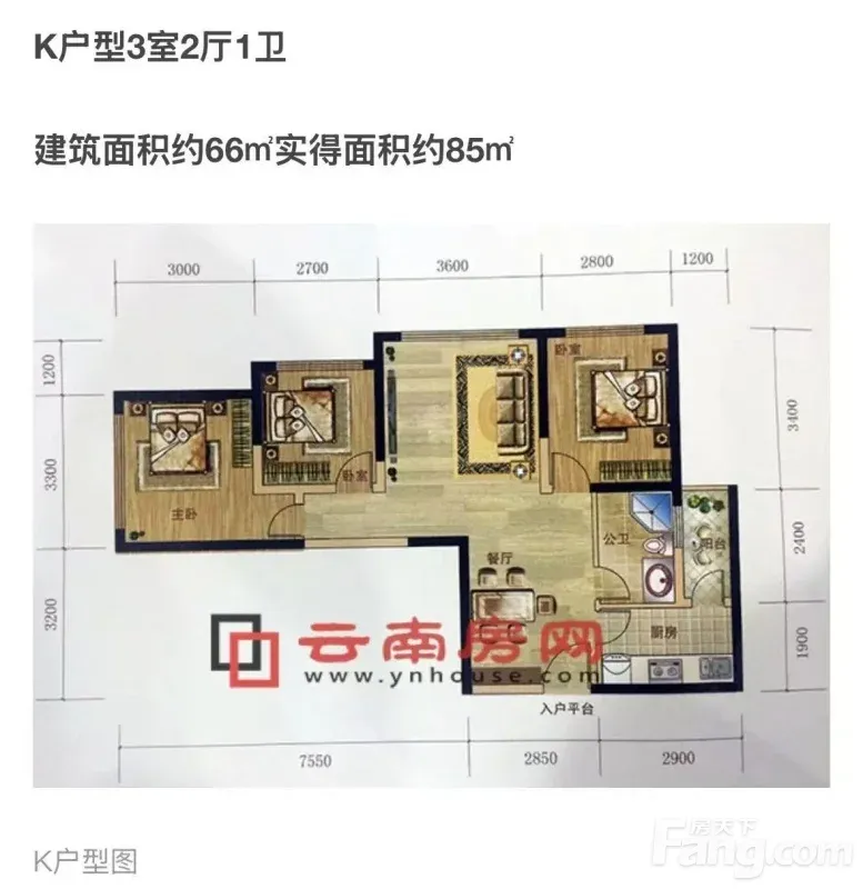 呈贡 蓝光天娇城3室2厅 65.54㎡ 毛坯、带车位 33万