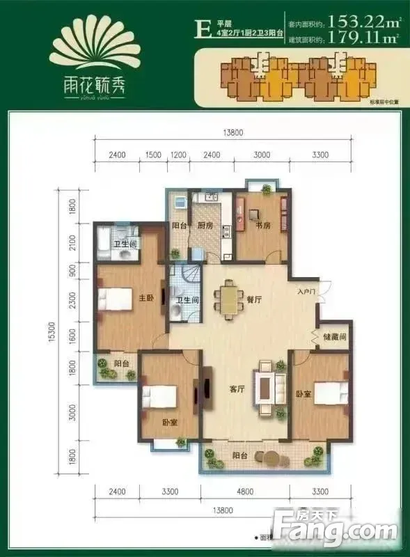 户型齐全,主打明卫,双阳台四居