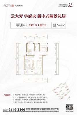 1,百强房企开发,品质保障。 2,绿化45%,楼间距50-70米,保证日照光照。 3.105平三室两厅两卫,户型方正实用,格局好 4.两梯四户板楼,边户采光和视野好,明厨明卫,户型设计合理,每个户型都带阳台,大。 5.小区门口就是云大和西南联大,一边是云南,丰富 6.小区门口是云南白药街,到高铁站和站都,交通方便 7.周边有实力锦城小区和天水嘉园小区,配套很完善