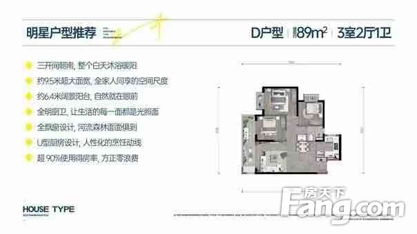 1.户型方正格局好,使用率高 2.客厅宽敞舒适,采光向阳好 3.卧室带飘窗 4.阳台面积大 5.厨房空间充足,通透性好