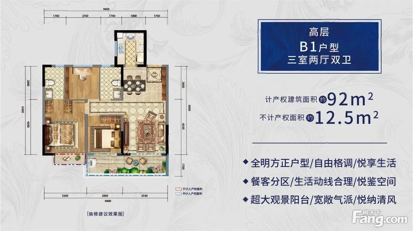 户型齐全,主打户型方正,动静分离四居