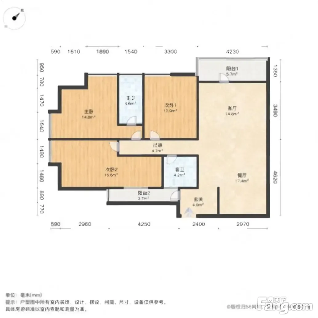 户型齐全,主打明卫,明厨,客厅朝南,全明格局三居