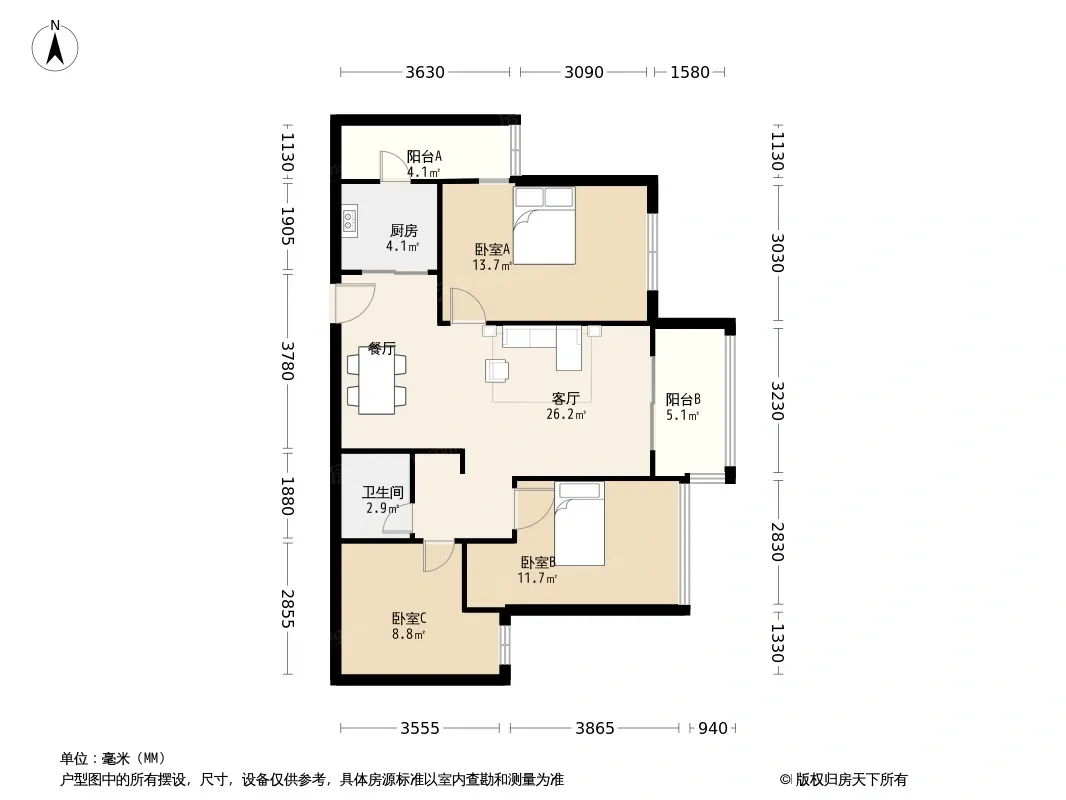 户型齐全,主打明厨,明卫,双阳台三居