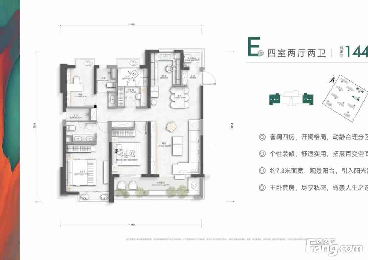 户型齐全,主打全明格局,动静分离,主卧带卫,U型厨房,干湿分离,中西双厨,大面宽阳台三居