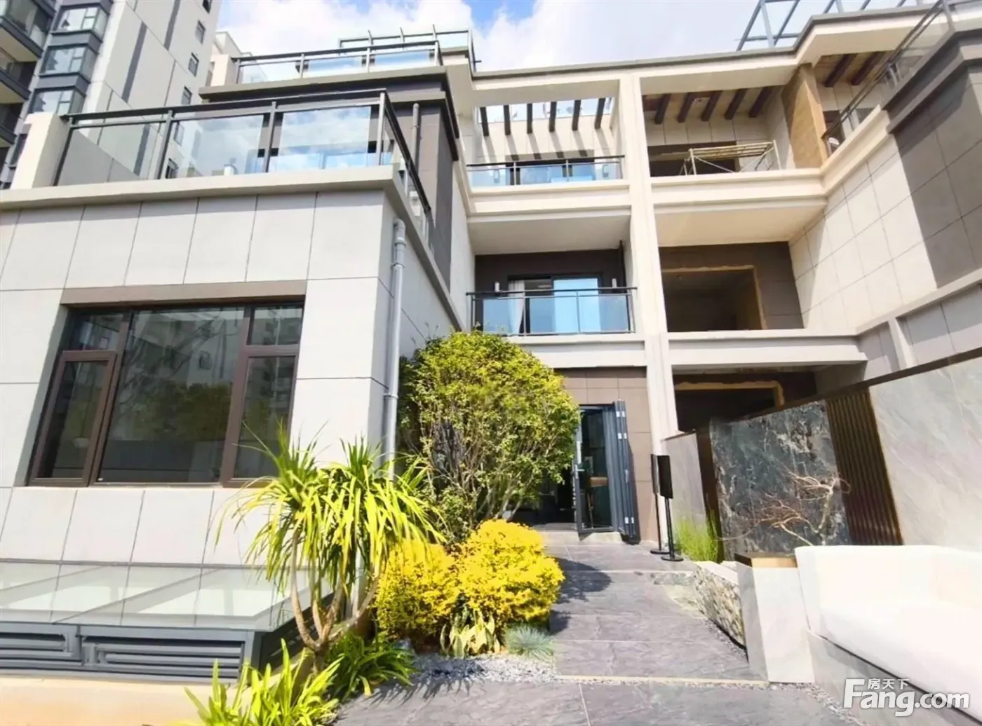 1.联排别墅,地上四层,地下一层,使用面积319平 2.带一个大花园,5个露台,前后采光井,采光充足,全天日照 3.现房,70年产权别墅,小区自带百亩公园,1.2容积率,低密别墅区
