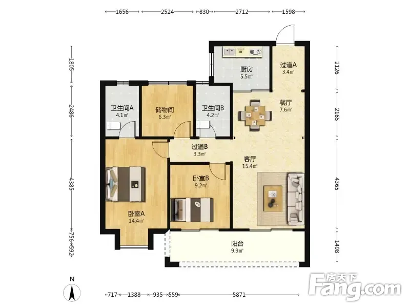 雨花玖悦 3室2厅 109平