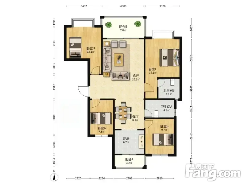 户型齐全,主打户型方正,明卫,双阳台,主卧朝南四居