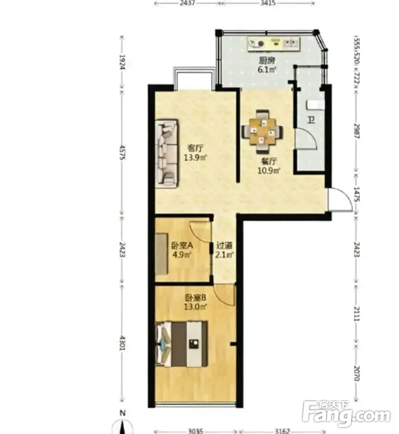 户型齐全,主打明厨,明卫,客厅朝南,全明格局,双卧朝南二居