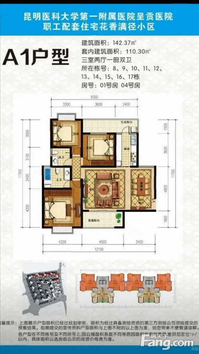 早晚日照 花香满径 142平3室2卫 带车位 7楼毛坯82万
