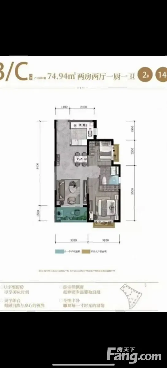 云麓湾 2室2厅1卫 毛坯 35万元 74平米南北通透