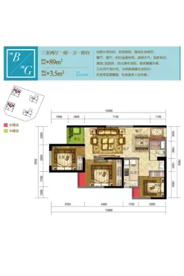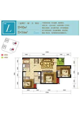 户型齐全,主打户型方正,动静分离,L型厨房三居
