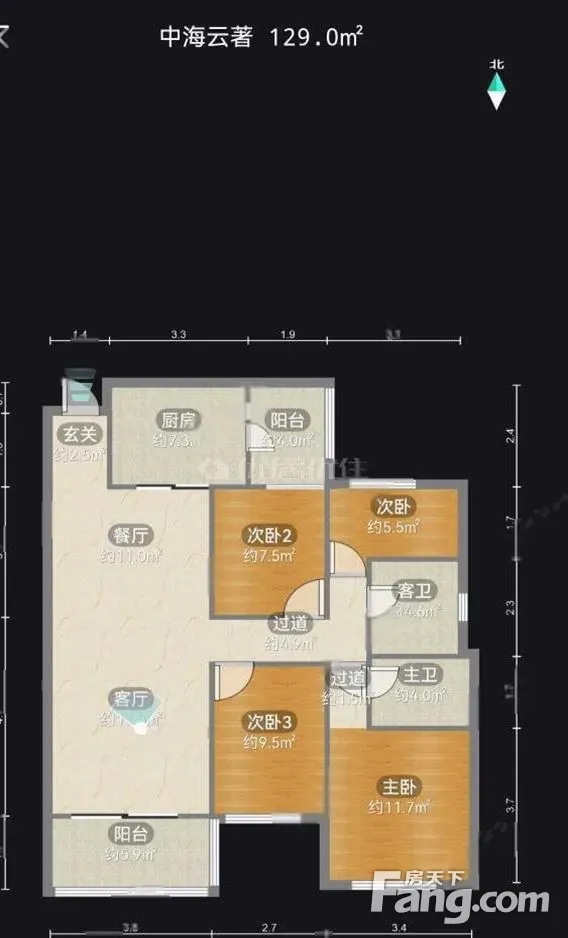 中海云著 精装 电梯房 4室 129平 南北通透
