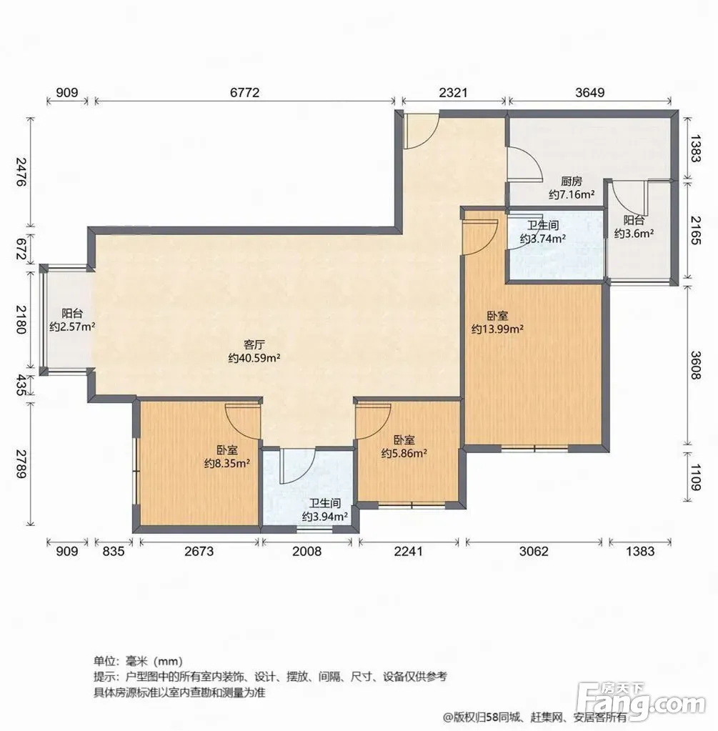户型齐全,主打独立衣帽间,双阳台,双卧朝南,主卧朝南三居