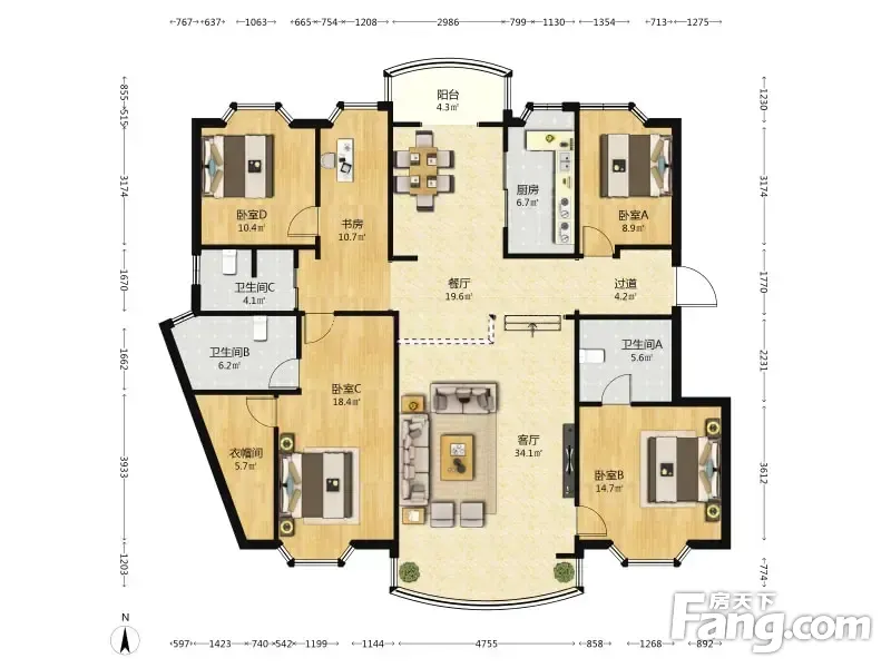 房屋拥有相对宽松的尺寸,布局通透,动静分离,设计豪华