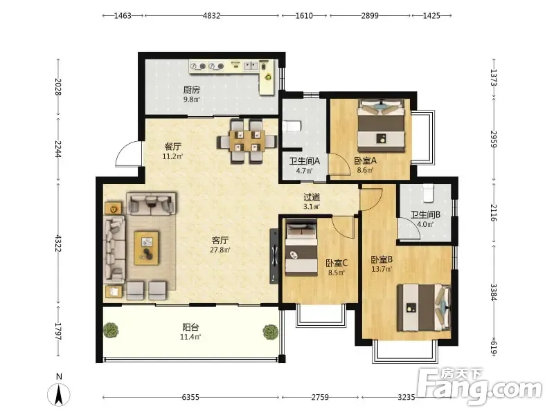 户型齐全,主打全明格局,明厨明卫四居