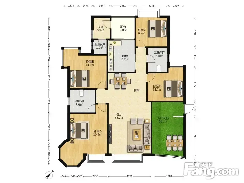 天保家园 4室2厅 156平