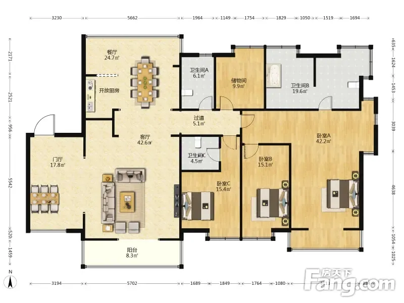 房屋拥有相对宽松的尺寸,布局通透,动静分离,设计豪华