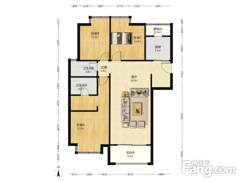 万科金域缇香 3室2厅 131.73平