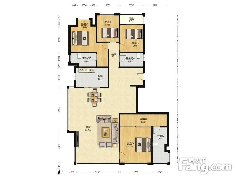 美的北京路9號 4室2厅 199平