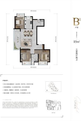 户型齐全,主打户型方正,动静分离三居