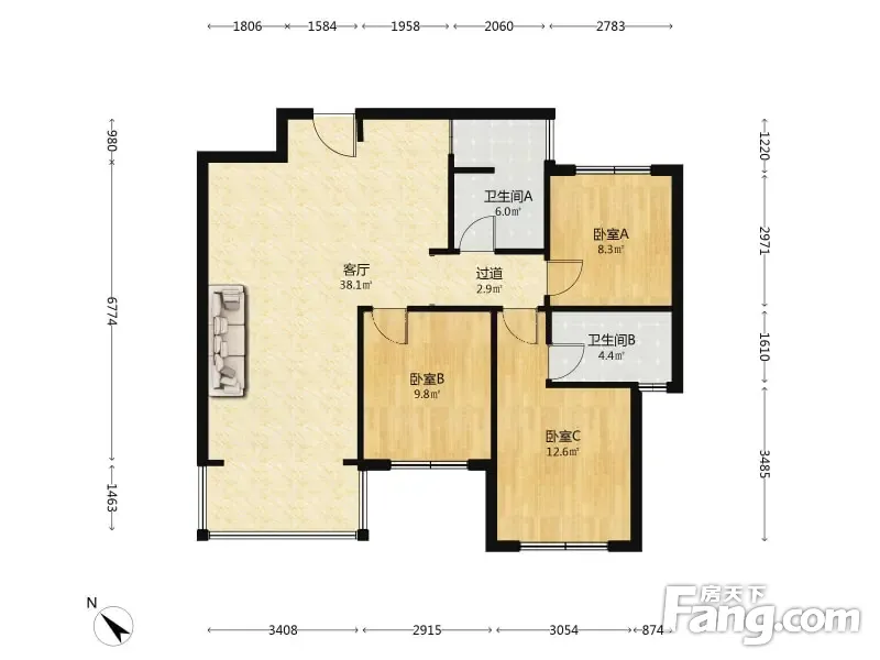 3室1厅2卫