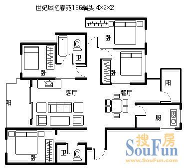 户型齐全,主打户型方正,明卫,明厨,双阳台四居
