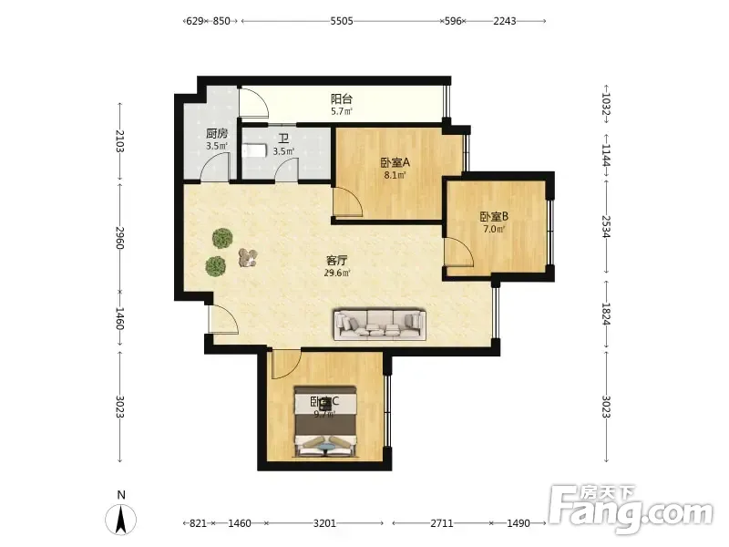 蓝光天娇城 3室2厅 93平