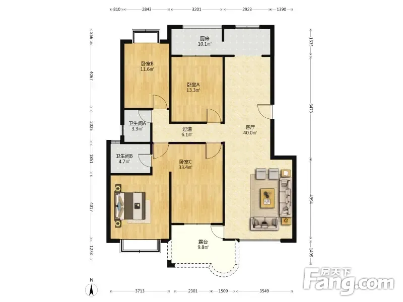 户型齐全,主打明卫,明厨,客厅朝南,全明格局三居