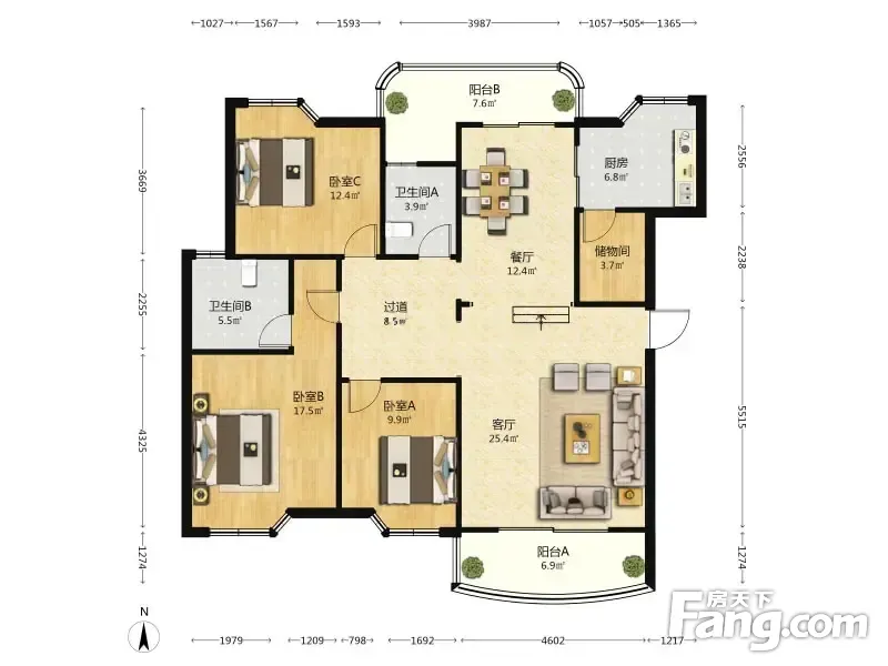 华龙人家 3室2厅 136平