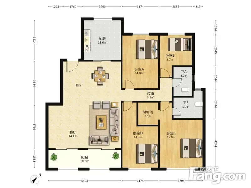 户型齐全,主打户型方正,动静分离四居