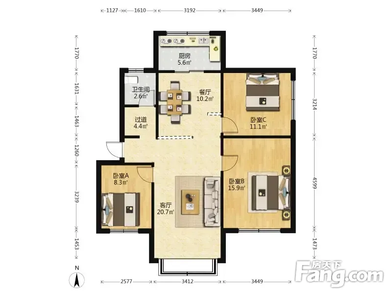 3室2厅1卫