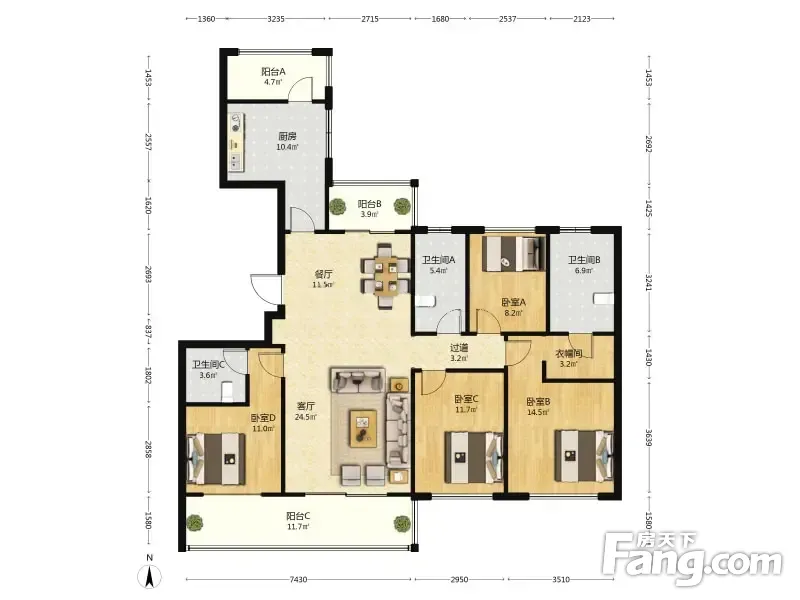 房屋拥有相对宽松的尺寸,布局通透,动静分离,设计豪华