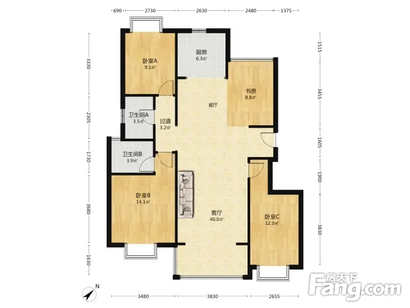 都铎城邦7号院 4室1厅 114.24平