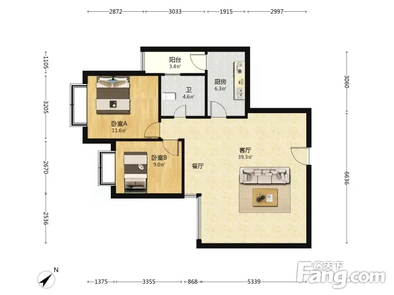 都铎城邦1号院 3室2厅 89平