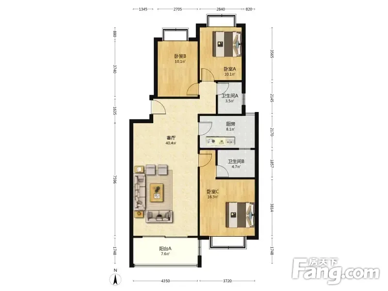 3室1厅2卫