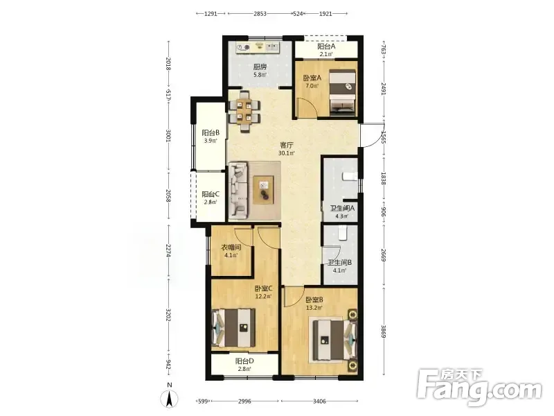 户型齐全,主打户型方正,动静分离,卧室带阳台三居