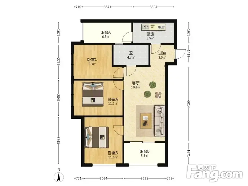 3室2厅1卫