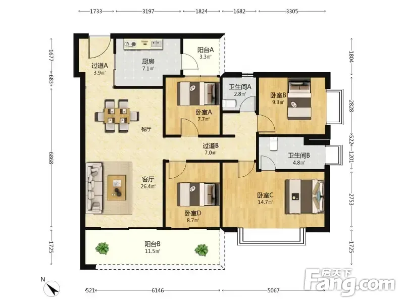 万科公园城市四期 4室2厅 132平