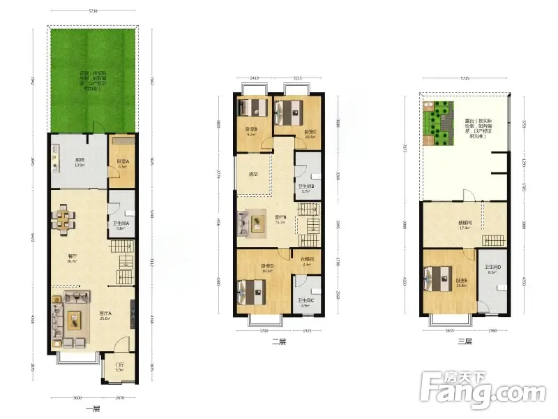 云康园小区 5室2厅 227平 联排别墅