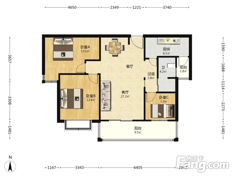 3室2厅1卫