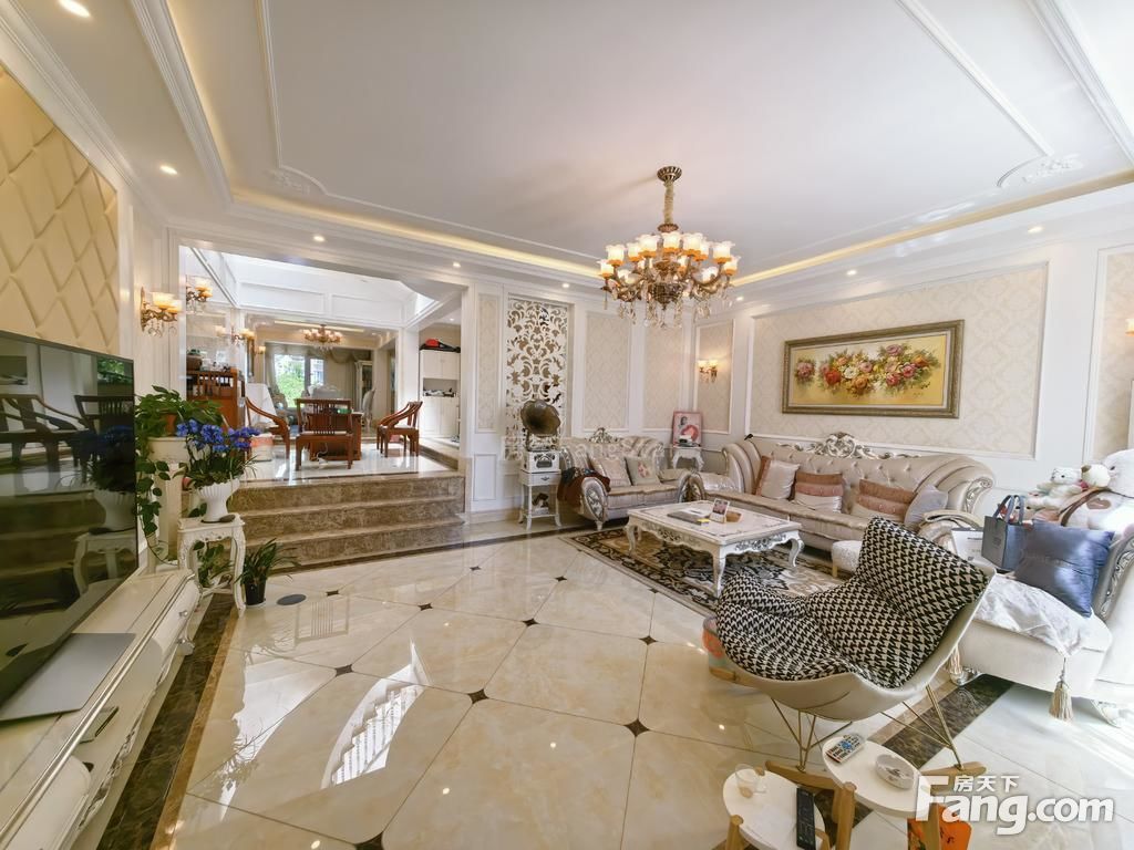 滇池度假区70年产权别墅 1·低密度住宅纯别墅区·所居住人群均为各行各业成功人士群体·2·小区植被茂盛·绿化高·环境优美·公共设施齐全 二··客厅格局1·客厅6米高挑带落地飘窗·客厅错落设计分布有z质2卧室均以衣帽间带卫生间·3·整体格局合理舒适