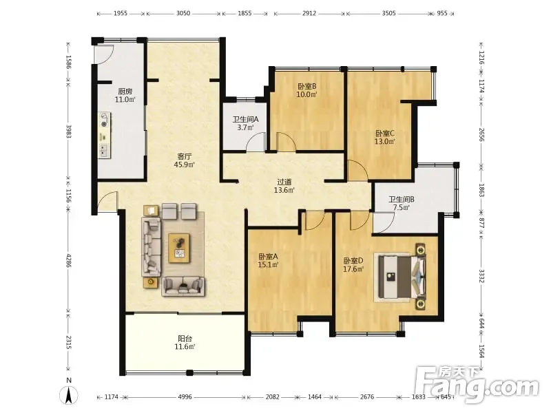 中洲阳光 4室2厅 180平