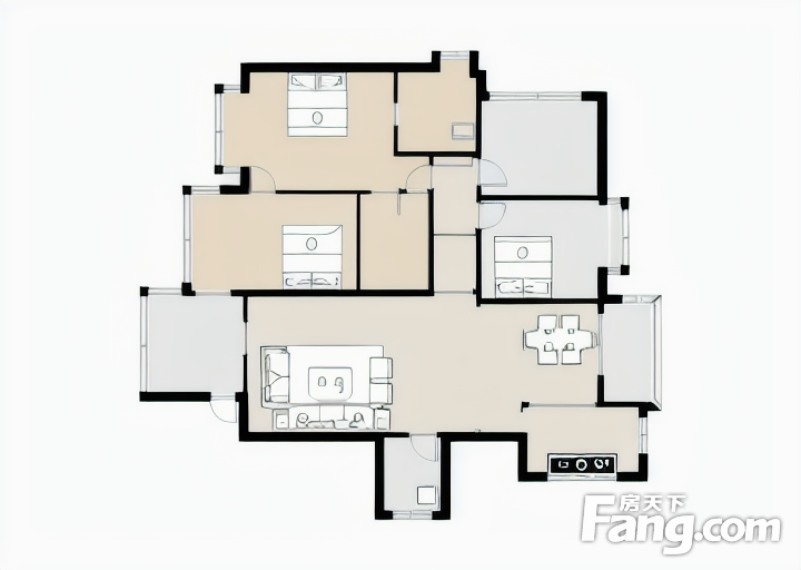 中产花香十里户型主要有91平-150平的户型方正,明卫,独立衣帽间,明厨,双卧朝南的三居 。
