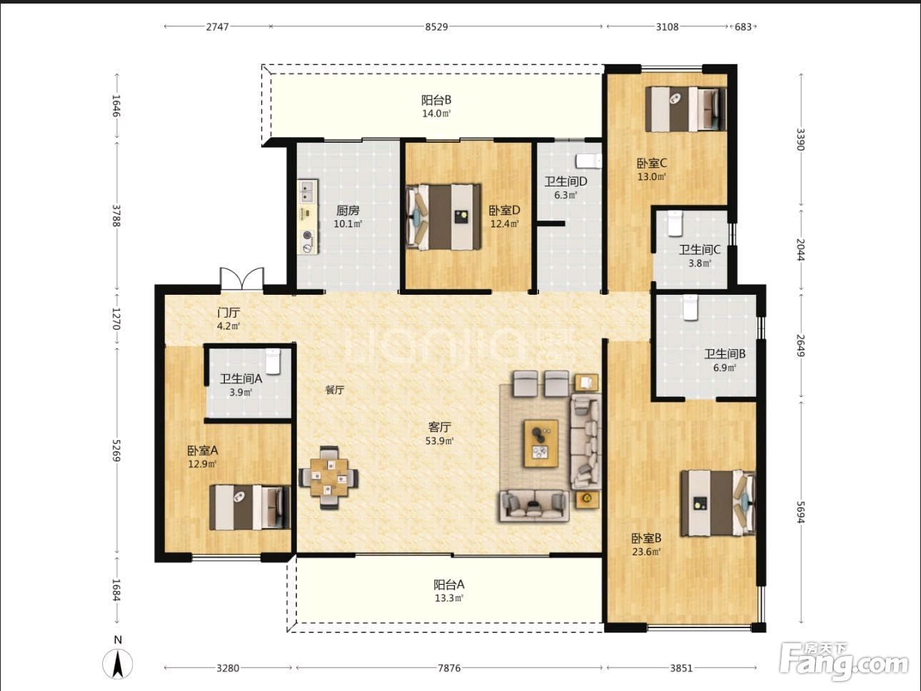 户型齐全,主打南北通透,全明格局四居