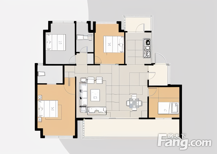 户型齐全,主打户型方正,动静分离四居